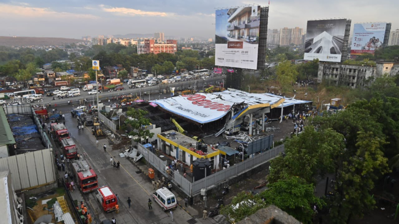 120 x 120 ಅಡಿ ಅಳತೆಯ ಹೋರ್ಡಿಂಗ್ ಪೆಟ್ರೋಲ್ ಪಂಪ್ ಮೇಲೆ ಬಿದ್ದಿದೆ. 100 ಅಡಿ ಎತ್ತರದ ಜಾಹೀರಾತು ಫಲಕ ಬಿದ್ದಿದ್ದರಿಂದ ಸಾವಿನ ಸಂಖ್ಯೆ 14ಕ್ಕೆ ಏರಿದೆ ಮತ್ತು 70ಕ್ಕೂ ಹೆಚ್ಚು ಜನರು ಗಾಯಗೊಂಡಿದ್ದಾರೆ. ಅಲ್ಲದೇ, ಇಲ್ಲಿಯವರೆಗೆ 88 ಜನರನ್ನು ರಕ್ಷಿಸಿ ಆಸ್ಪತ್ರೆಗೆ ದಾಖಲಿಸಲಾಗಿದೆ. ಈ ಪೈಕಿ 31 ಜನರು ಆಸ್ಪತ್ರೆಯಿಂದ ಬಿಡುಗಡೆಯಾಗಿದ್ದಾರೆ. ಸುಮಾರು 80 ಜನರನ್ನು ಸುರಕ್ಷಿತವಾಗಿ ರಕ್ಷಿಸಲಾಗಿದೆ.