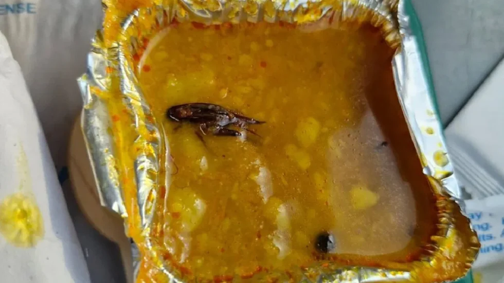 ಜೂ. 18ರಂದು ಪ್ರಯಾಣಿಕರೊಬ್ಬರು ಪ್ರಯಾಣಿಸುತ್ತಿದ್ದ ವೇಳೆ ಊಟದಲ್ಲಿ ಜಿರಳೆ (Cockroach) ಸಿಕ್ಕಿದೆ. ವಿದಿತ್ ವರ್ಷಿಣಿ ಎಂಬ ವ್ಯಕ್ತಿ ತಮ್ಮ ಊಟದ ಚಿತ್ರವನ್ನು ಸಾಮಾಜಿಕ ಮಾಧ್ಯಮ ಪ್ಲಾಟ್ಫಾರ್ಮ್ ಎಕ್ಸ್ನಲ್ಲಿ ಪೋಸ್ಟ್ ಮಾಡಿ ಆಕ್ರೋಶ ವ್ಯಕ್ತಪಡಿಸಿದ್ದಾರೆ.