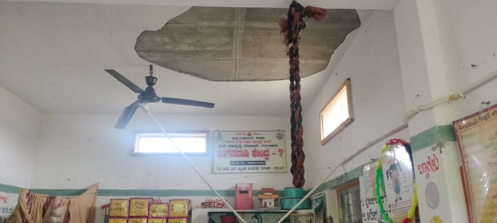 ಈ ಘಟನೆ ಕೊಪ್ಪಳ ಜಿಲ್ಲೆಯ ಗಂಗಾವತಿ ನಗರದ ಮೆಹಬೂಬ್ ನಗರದಲ್ಲಿ ನಡೆದಿದೆ. ಸೋಮವಾರ ಬೆಳಗ್ಗೆ ಈ ಘಟನೆ ನಡೆದಿದೆ. ಅಂಗನವಾಡಿಯಲ್ಲಿ ಸುಮಾರು 20ಕ್ಕೂ ಅಧಿಕ ಮಕ್ಕಳು ಇದ್ದರು. ಈ ವೇಳೆ ದಿಢೀರ್ ಕಾಂಕ್ರೀಟ್ ಉದುರಿ ಬಿದ್ದಿದೆ. ಇದರಿಂದ ನಾಲ್ಕು ಮಕ್ಕಳ ತಲೆ ಮತ್ತು ಕಾಲುಗಳಿಗೆ ಗಾಯವಾಗಿವೆ. ಅಮನ್, ಮನ್ವಿತ್, ಮರ್ದನ್, ಸುರಕ್ಷಾ ಎಂಬ ಮಕ್ಕಳು ಗಾಯಗೊಂಡಿದ್ದಾರೆ.