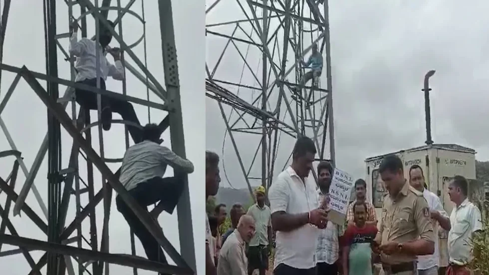 ಸಮರ್ಪಕ ನೆಟ್ವರ್ಕ್ ಗೆ ಆಗ್ರಹಿಸಿ ಟವರ್ ಏರಿ ಪ್ರತಿಭಟನೆ!