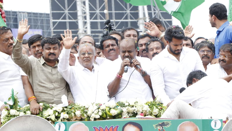 ಕಾಂಗ್ರೆಸ್ನ ದೆಹಲಿ ನಾಯಕರು ದೇವೇಗೌಡರ ಮನೆಗೆ ಬಂದು ಒತ್ತಾಯ ಹಾಕಿ ನನಗೆ ಬಲವಂತವಾಗಿ ಸಿಎಂ ಸ್ಥಾನ ಕೊಟ್ಟಿದ್ದರು. ಇವತ್ತು ನಾನು ದೆಹಲಿಯಿಂದ ಕನ್ನಡ ನಾಡಿನ ಮಣ್ಣಿಗೆ ಪಾದಾರ್ಪಣೆ ಮಾಡಿದ್ದೇನೆ. ಕಾಂಗ್ರೆಸ್ ಜೊತೆ ಸರ್ಕಾರ ಮಾಡಿದಾಗ ನಮ್ಮನ್ನ ಯಾವ ರೀತಿ ನಡೆಸಿ ಕೊಂಡಿದ್ದರು ಎಂಬುವುದು ಎಲ್ಲರಿಗೂ ಗೊತ್ತಿದೆ. ಆಗ ವಿಷಕಂಠ ಆಗಿದ್ದೇ ಅಂತ ಹೇಳಿದ್ದೆ. ನಾನು ಯಡಿಯೂರಪ್ಪಗೆ ಅಧಿಕಾರ ಕೊಡಬೇಕು ಅಂತ ಇದ್ದವನು ನಾನು, ಆದ್ರೆ ಅವರಿಗೆ ಅಧಿಕಾರ ಕೊಡಬಾರದು ಅಂತ ಕುತಂತ್ರ ನಡೆಯಿತು. ನಾನೂ ಸಹ ಆ ಕುತಂತ್ರಕ್ಕೆ ಬಲಿಯಾದೆ. ನಾನು ಪಕ್ಷ ಉಳಿಸಿಕೊಳ್ಳೋಕೆ 20 ತಿಂಗಳು ಕೆಲಸ ಮಾಡಿದೆ. ಅಂದು ಸಹ ನಾನು ಹಣದ ವ್ಯಾಮೋಹ ಬಲಿಯಾಗಿಲ್ಲ. ಲಾಟರಿ ನಿಷೇಧ ಮಾಡಿದೆ, ಸಾರಾಯಿ ನಿಷೇಧ ಮಾಡಿದೆ ಎಂದು ಹೇಳಿದ್ದಾರೆ.
