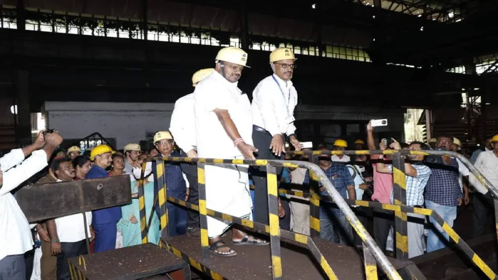 ಭಾನುವಾರ ಕುಮಾರಸ್ವಾಮಿ ಅವರು ಭದ್ರಾವತಿಯ ವಿಐಎಸ್ಎಲ್ಗೆ ಭೇಟಿ ನೀಡಿ ಕಾರ್ಖಾನೆಯ ಪರಿಸ್ಥಿತಿ ಅವಲೋಕಿಸಿದರು.ಈ ವೇಳೆ ಮಾತನಾಡಿದ ಅವರು, ಲೋಕಸಭಾ ಚುನಾವಣಾ ಸಂದರ್ಭದಲ್ಲಿ ಎರಡು ಬಾರೀ ರಾಘವೇಂದ್ರ ಜೊತೆ ಪ್ರಚಾರಕ್ಕೆ ಬಂದಿದ್ದೆ. ವಿಐಎಸ್ಎಲ್ ಕಾರ್ಖಾನೆ ಉಳಿಸುವುದು ಹಲವಾರು ವರ್ಷಗಳ ಬೇಡಿಕೆ ಇದೆ ಎಂದು ಅವರು ಹೇಳಿದ್ದರು. ಈ ಕಾರ್ಖಾನೆಯನ್ನು ಸರ್.ಎಂ. ವಿಶ್ವೇಶ್ವರಯ್ಯ ಅವರು ಸ್ಥಾಪಿಸಿದ್ದರು. ರಾಜ್ಯದ ಅಭಿವೃದ್ಧಿಗೆ ಪೂರಕವಾಗಿ ಕೆಲಸ ಮಾಡಿದ್ದ ವಿಶ್ವೇಶ್ವರಯ್ಯರವರು, ಹಲವಾರು ರೀತಿಯ ಏಳು-ಬಿಳಿನ ನಡುವೆ ಕಾರ್ಖಾನೆ ಉಸಿರು ಹಿಡಿದುಕೊಂಡಿದೆ. ಸಂಸದ ರಾಘವೇಂದ್ರ ಅವರು ಕಾರ್ಖಾನೆ ಉಳಿಸಲು ಸಾಕಷ್ಟು ಶ್ರಮಿಸಿದ್ದಾರೆ ಎಂದು ತಿಳಿಸಿದ್ದಾರೆ.