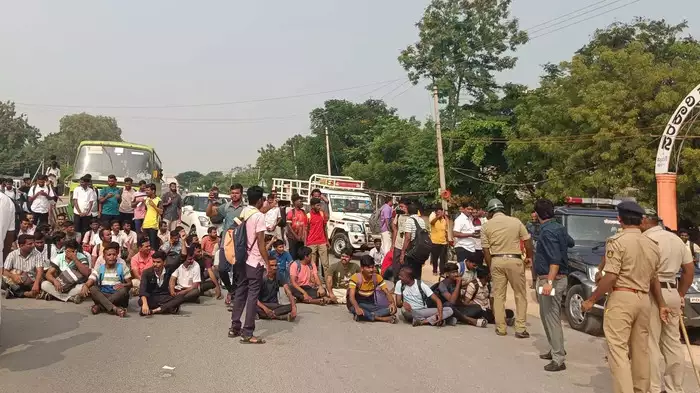 ಪಿಡಿಒ ಪರೀಕ್ಷೆಯಲ್ಲಿ ಪರೀಕ್ಷಾರ್ಥಿಗಳಿಗೆ ಪ್ರಶ್ನೆ ಪತ್ರಿಕೆ ವಿತರಣೆ ತಡವಾಗಿದ್ದರಿಂದ ರೊಚ್ಚಿಗೆದ್ದ ವಿದ್ಯಾರ್ಥಿಗಳು ರಸ್ತೆ ತಡೆದು ಪ್ರತಿಭಟನೆ ನಡೆಸಿದ್ದಾರೆ. ಕಾಲೇಜಿನಲ್ಲಿ ಕೇವಲ ಶೇ. 20ರಷ್ಟು ಪರೀಕ್ಷಾರ್ಥಿಗಳಿಗೆ ಮಾತ್ರ ಪ್ರಶ್ನೆ ಪತ್ರಿಕೆ ತಲುಪಿದೆ. ಇನ್ನೂ ಶೇ. 80ರಷ್ಟು ಅಭ್ಯರ್ಥಿಗಳಿಗೆ ಪ್ರಶ್ನೆ ಪತ್ರಿಕೆ ಸಿಕ್ಕಿಲ್ಲ ಎಂದು ಪ್ರತಿಭಟನೆಯಲ್ಲಿ ಆಕ್ರೋಶ ವ್ಯಕ್ತಪಡಿಸಿದ್ದಾರೆ.