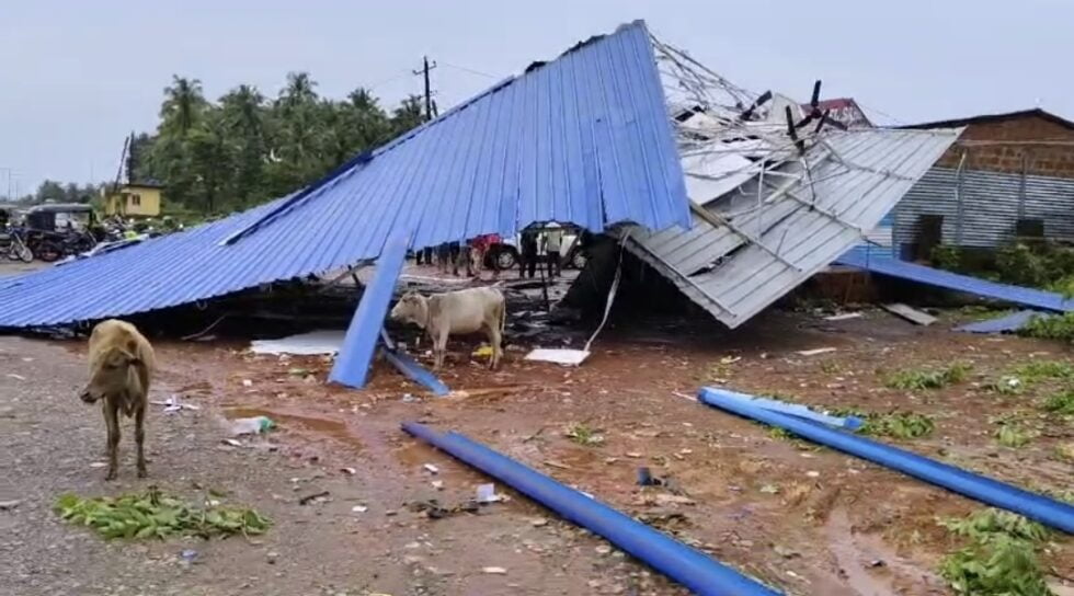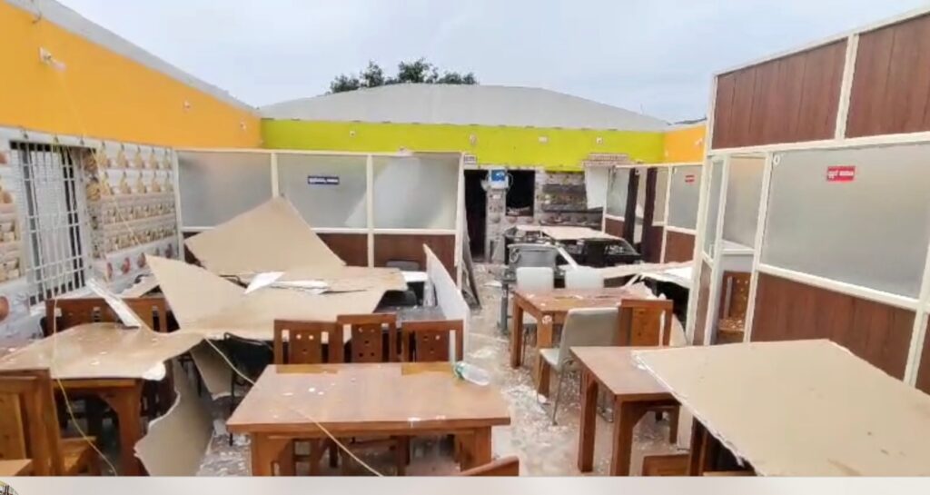 ಶಿರೂರು: ಮಂಗಳವಾರ ಮುಂಜಾನೆ ಬೀಸಿದ ಭಾರೀ ಗಾಳಿ ಮಳೆಗೆ ಶಿರೂರು ಗಡಿ ಭಾಗದಲ್ಲಿರುವ ಸಹರಾ ಹೋಟೆಲ್ನ ಮೇಲ್ಚಾವಣೆ ಹಾರಿ ಹೋಗಿದೆ. ಗಾಳಿಯ ಅಬ್ಬರಕ್ಕೆ ಹೋಟೆಲ್ ಸಂಪೂರ್ಣ ಕುಸಿದು ಬಿದ್ದು ನೆಲಸಮಗೊಂಡಿದೆ. ಮಂಗಳವಾರ ಬೀಸಿದ ಹಠಾತ್ ಗಾಳಿ ಈ ಭಾಗದಲ್ಲಿ ಬಾರೀ ಅವಘಡ ಉಂಟು ಮಾಡಿದೆ. ಹೋಟೆಲ್ ಮೇಲ್ಚಾವಣೆ ಸೇರಿದಂತೆ ಲಕ್ಷಾಂತರ ರೂಪಾಯಿ ಮೌಲ್ಯದ ವಸ್ತುಗಳು, ಭಾರೀ ಗಾಳಿ-ಮಳೆಗೆ ಆಹುತಿಯಾಗಿದೆ.