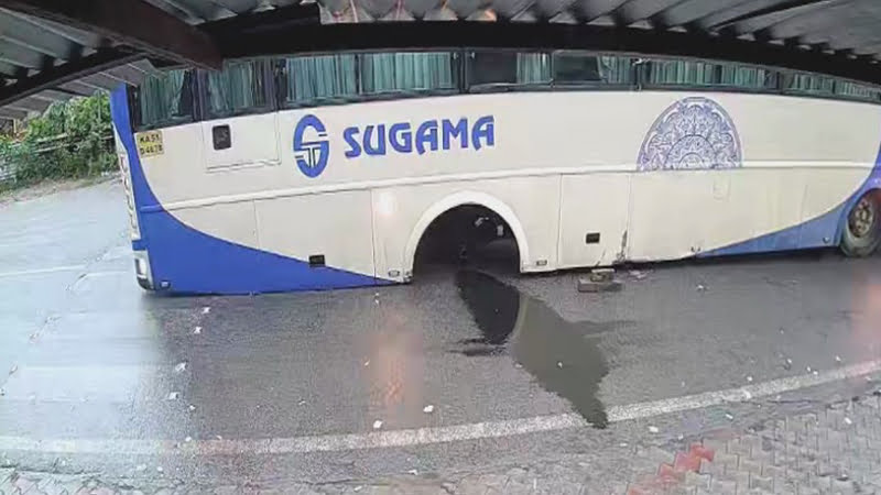 ಮಳೆಯಲ್ಲಿ (Rain) ಸಂಚರಿಸುತ್ತಿದ್ದಾಗಲೇ ಬಸ್ಸಿನ ಚಕ್ರ ಕಳಚಿ ಬಿದ್ದಿರುವ ಈ ಘಟನೆ ಎನ್.ಆರ್.ಪುರ (NR Pura) ತಾಲೂಕಿನ ಬಾಳೆಹೊನ್ನೂರಿನ (Balehonnur) ರೋಟರಿ ಸರ್ಕಲ್ ಹತ್ತಿರ ನಡೆದಿದೆ.
