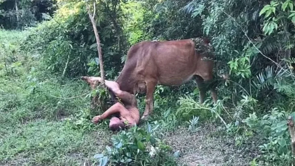 ಈ ಅಘಾತಕಾರಿ ಘಟನೆ ಥೈಲ್ಯಾಂಡ್ ನಲ್ಲಿ ನಡೆದಿದೆ. ಅಲ್ಲಿಗೆ ಪ್ರವಾಸಕ್ಕೆ ಬಂದಿದ್ದ ರಷ್ಯಾದ 26 ವರ್ಷದ ಕುವ್ಶಿನೋವ್ ಎಂಬಾತ ಕುಡಿದ ಮತ್ತಿನಲ್ಲಿ ಸಂಪೂರ್ಣ ಬೆತ್ತಲಾಗಿ ಹಸುವಿನ ಮೇಲೆ ಅತ್ಯಾಚಾರ ನಡೆಸಲು ಮುಂದಾಗಿದ್ದಾನೆ. ಕೋಪಗೊಂಡ ಹಸು ಈ ಕಾಮಾಂಧನ ಮೇಲೆ ಕೊಂಬಿನಿಂದ ದಾಳಿ ನಡೆಸಿದೆ. ಕೊನೆಗೆ ಪೊಲೀಸರು ಸ್ಥಳಕ್ಕಾಗಮಿಸಿ ಆತನನ್ನು ರಕ್ಷಿಸಿ, ಆಸ್ಪತ್ರೆಗೆ ದಾಖಲಿಸಿದ್ದಾರೆ. ಸದ್ಯ ಆತ ಪೊಲೀಸರ ವಶದಲ್ಲಿದ್ದು, ತನಿಖೆ ನಡೆಸಲಾಗುತ್ತಿದೆ.