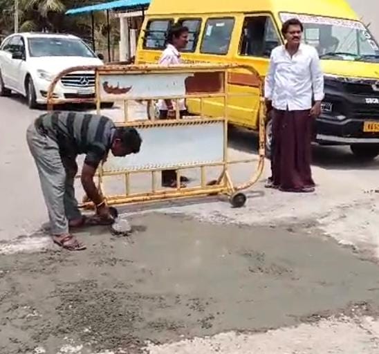 ತಾವೇ ಮುಂದೆ ನಿಂತು ಮಳೆಯಿಂದಾಗಿ ಬಿದ್ದಿರುವ ಗುಂಡಿಗಳನ್ನು ಮುಚ್ಚಿಸಿ, ವಾಹನ ಸವಾರರಿಗೆ ದಾರಿ ಮಾಡಿಕೊಡುತ್ತಿದ್ದಾರೆ. ಇದರಿಂದಾಗಿ ಹತ್ತಾರು ಜೀವ ಉಳಿಸಿದ ಮಹಾನ್ ಕಾರ್ಯ ಅವರಿಂದ ನಡೆಯುತ್ತಿದೆ. ಇದನ್ನು ಕಂಡು ಅಲ್ಲಿ ಚಲಿಸುತ್ತಿದ್ದ ವಾಹನ ಸವಾರರು ಕೃತಜ್ಞತೆ ಸಲ್ಲಿಸಿ ಮುಂದೆ ನಡೆಯುತ್ತಿದ್ದಾರೆ. ಈ ಹಿಂದೆಯೂ ಕೂಡ ತಗ್ಗು- ಗುಂಡಿಗಳನ್ನು ಮುಚ್ಚಿಸುವ ಕಾರ್ಯವನ್ನು ವಿನೋದ್ ರಾಜ್ ಮಾಡಿದ್ದರು.